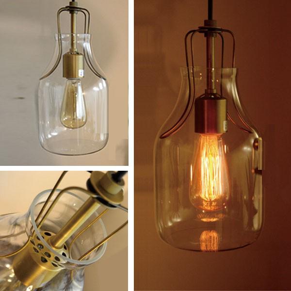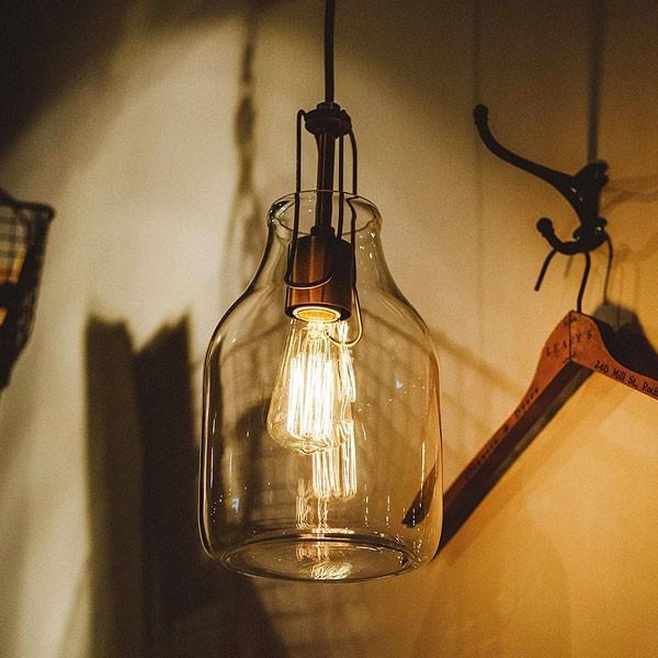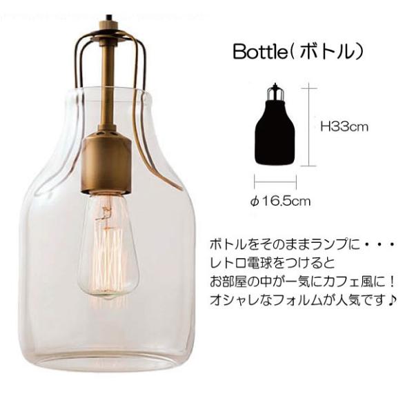今なら送料無料。ボトルをそのままランプにしたレトロテイストのガラスのペンダントランプ ボトル