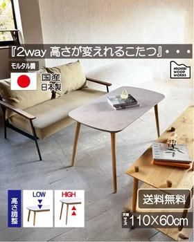 ハイタイプと普通のロータイプで使える2Wayこたつテーブル。
