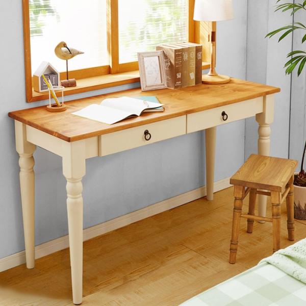 今なら送料無料、ワイドに使える130cm幅のパイン材のオイル仕上げのかわいいカントリーデスク ラベンダー TSD-1701デスク 平机 作業台