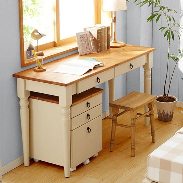 デスク 机 パソコンデスク 学習机 幅130cm 木製 収納付き フレンチカントリー 姫系 シンプル ナチュラル 北欧風 おしゃれ かわいい